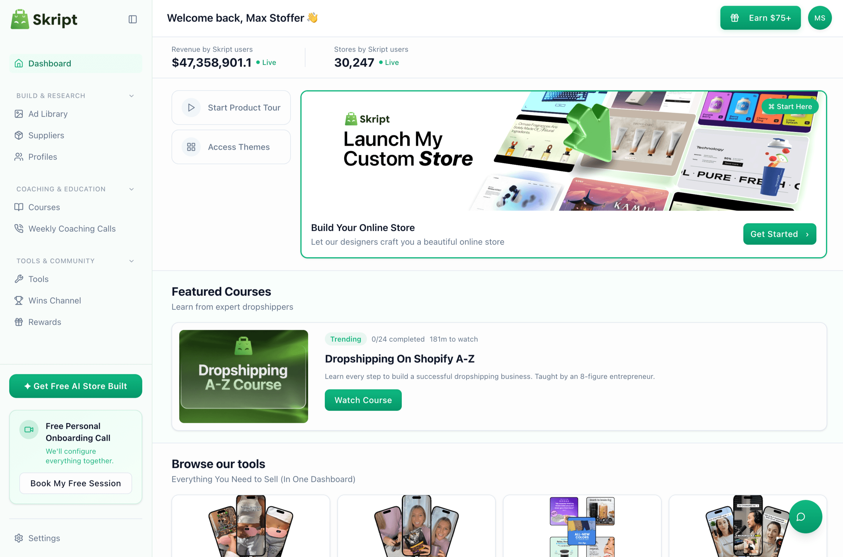 Everything you need to launch a profitable brand, from a ready store to content, suppliers, and more.