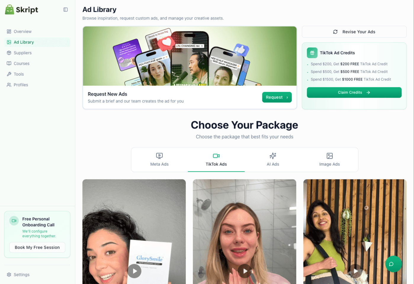 I’ve built stores before and it always took forever, but Skript had mine ready with products, content, and suppliers in minutes. Absolutely unreal. I’ve already launched ads and I’m finally moving fast instead of getting stuck on setup.