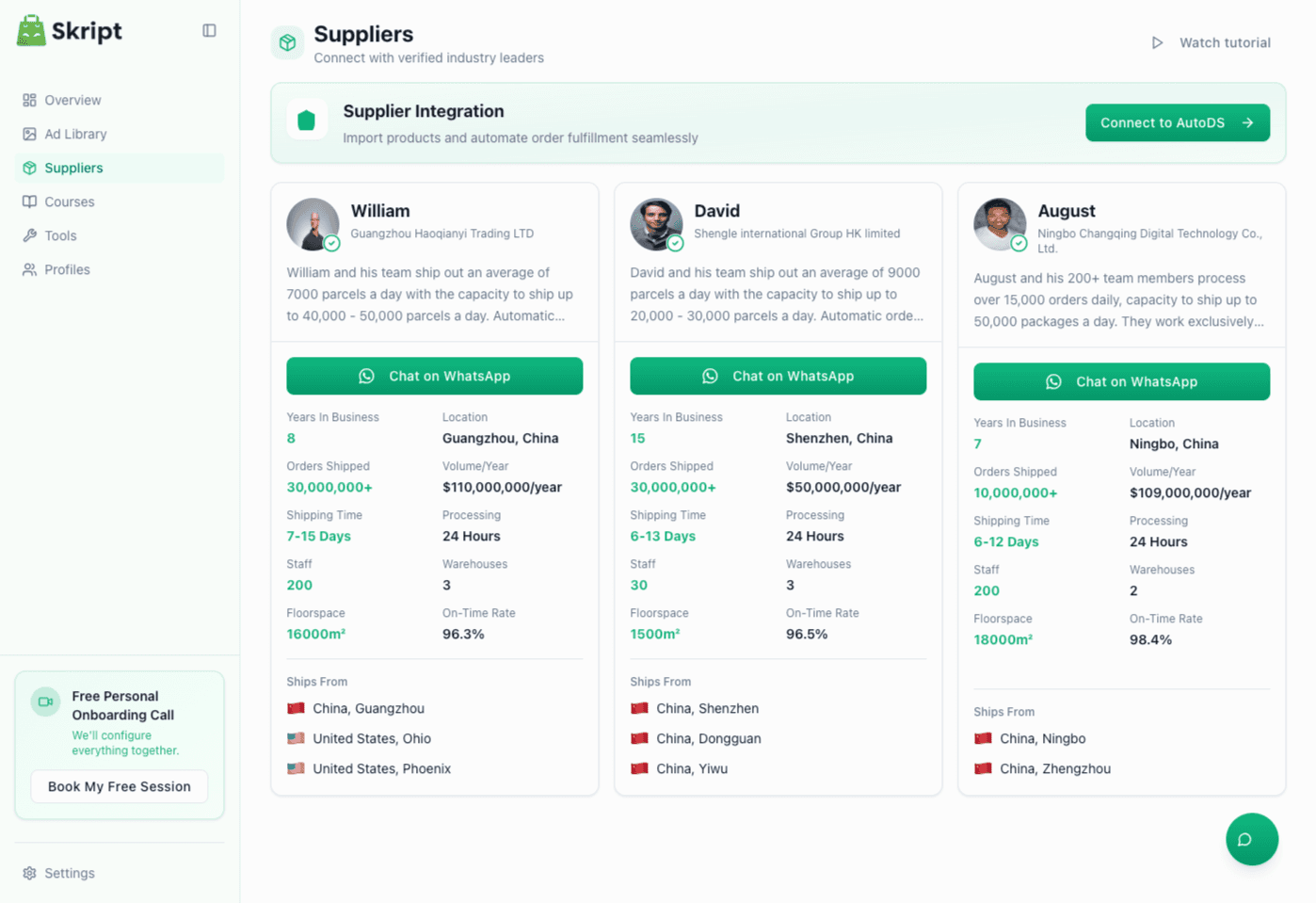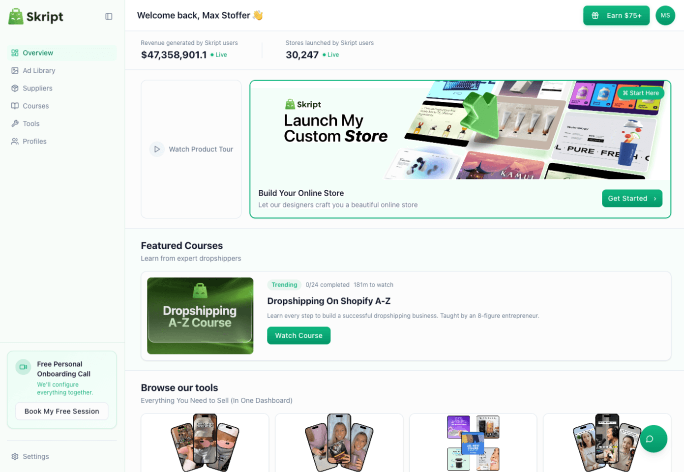 If Skript existed when I was learning, I would’ve avoided so many headaches. Having your store, products, content, and suppliers handled instantly is insane. Now I can focus purely on strategy and scaling. Worth every penny.